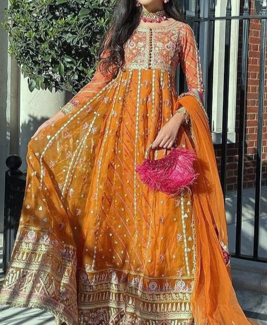 Grace S402 -Embroidered 3pc organza dress with embroidered organza duppata.